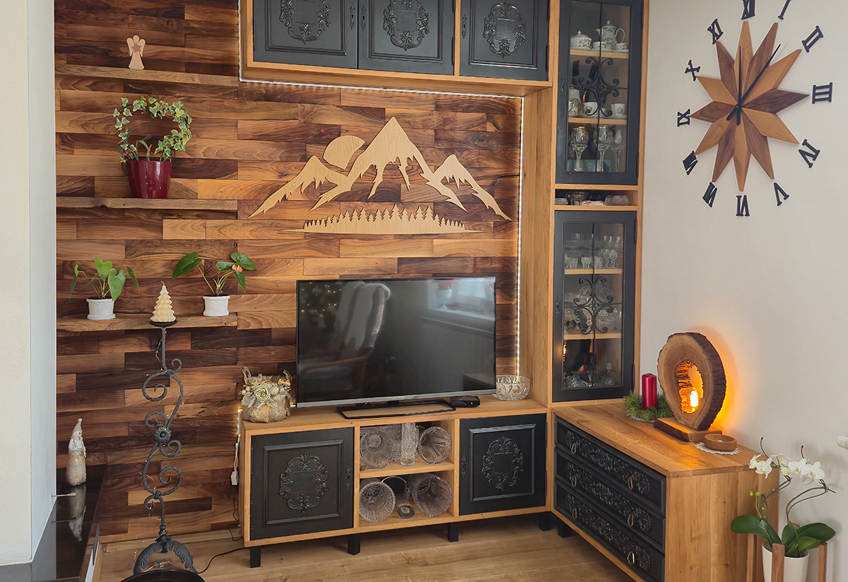 Zachoval spomienku rodičov a vytvoril unikátny kúsok nábytku. Starú obývaciu stenu prerobil na nový poklad z dreva